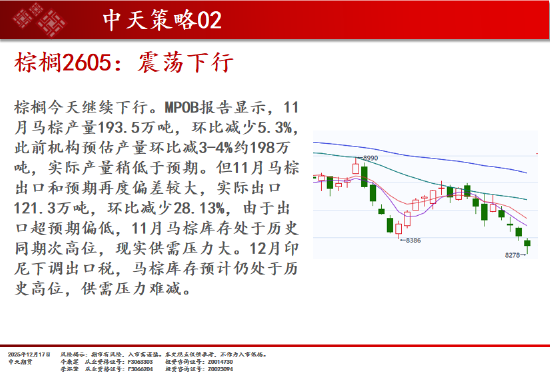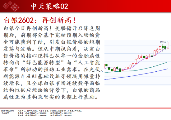 2025年12月18日 03:5702 九、螺纹2605 十、白银2602 十一、棉花2605 十二、棕榈2605 十三、纯碱2605 十四、焦煤2605 十五、白糖2605 十六、PVC2601 十七、PTA2605 十八、橡胶