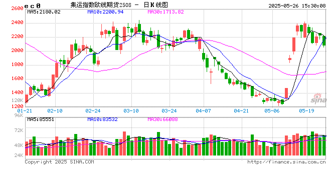 2025年5月26日,商品期货市场收盘。主力合约跌多涨少。上涨方面,玻璃、燃油、原油涨超1%;下跌方面,集运欧线跌超5%,氧化铝、工业硅、锰硅、合成橡胶、多晶硅跌超3%。